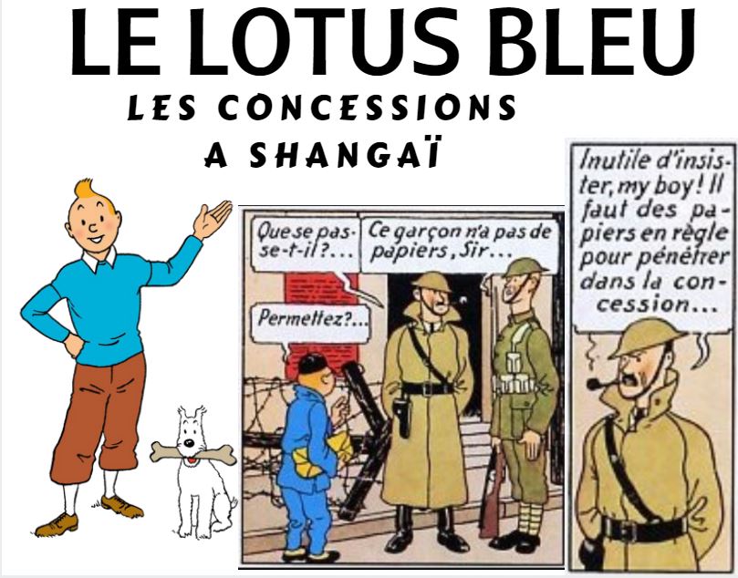 Qui dit « commerce international » dit… concessions. Une grande partie de l’intrigue du Lotus bleu se situe dans la concession internationale, à Shanghai. Depuis le milieu du XIXe siècle et la fin de la seconde guerre de l’opium, la Chine comptait vingt-six concessions étrangères sur son territoire suite à la signature de « traités inégaux ». Il s’agissait d’enclaves territoriales sur lesquelles l’État chinois abdiquait ses droits à l’égard des étrangers. Américains, Britanniques, Français, Belges… mais aussi Russes, Portugais, Japonais, Allemands...