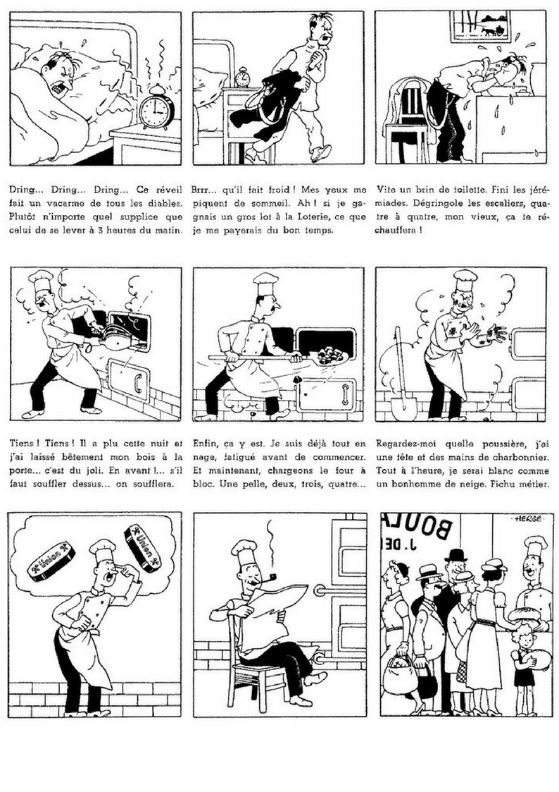 Il réalise ainsi un petit dépliant publicitaire sous forme d’histoire en image (Journal Humoristique) avec un personnage de boulanger qui trouve le salut et gagne de précieuses heures de sommeil grâce à l’utilisation de ce type de combustible.