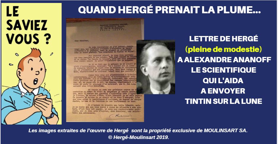Hergé sait en effet que pour l’aventure lunaire, il doit disposer d’une information scientifique remarquable. Il a découvert le livre d’Ananoff et cet ouvrage l’a fortement impressionné et c’est la raison pour laquelle il s’empresse d’écrire à l’auteur pour le solliciter car il aimerait, écrit-il :