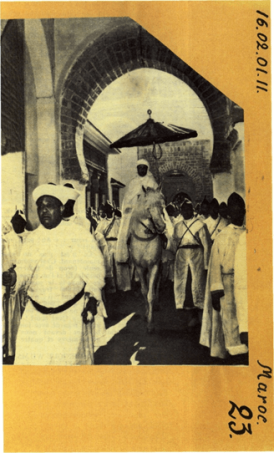 Ci-dessous la documentation extraite des archives de Hergé, ayant servi à Hergé pour l’un des premiers Hors Texte couleurs. concernant Omar Ben Salaad se dirigeant vers la mosquée sur son âne.