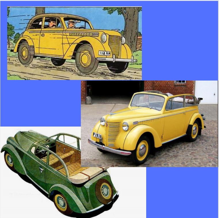 Attardons-nous sur l’Opel Olympia, la voiture des espions syldaves du Sceptre d’Ottokar. La même que celle qu’Hergé possédait à l’époque. En effet, Hergé passa son permis de conduire et s’offrit sa première voiture en 1938 à l’âge de 31 ans. Et ce fut, bien évidemment une Opel Olympia Cabriolet Coach. C’est sans doute la raison pour laquelle il choisit de dessiner cette dernière pour le Sceptre d’Ottokar. Voici ce qu’il en dit :