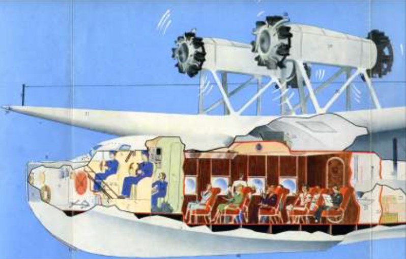 - – Pour les besoins de la cause, Hergé n’a pas hésité à modifier la réalité. C’est ainsi qu’il n’y a jamais eu de porte latérale, pour des raisons évidentes d’étanchéité. On n’accédait pas par une porte latérale dans l’hydravion, mais par le haut du cockpit.