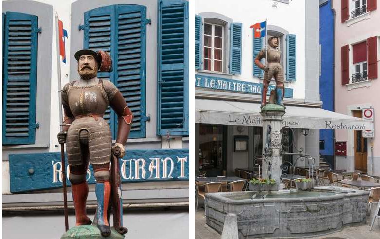 Lorsque Tintin et le capitaine Haddock découvrent la ville vaudoise de Nyon, ils passent devant une statue connue sous le nom de «statue de Maître Jacques ». Selon un article de la Revue historique vaudoise de 1942, Maître Jaques est équipé d’une armure savoyarde du XVIe siècle. Le monument a, quant à lui, été érigé en 1537, soit l’année qui suit l’annexion du Pays de Vaud par les Bernois. Ce personnage historique devait être particulièrement populaire pour que les nouvelles autorités acceptent qu’une sculpture rappelle le précédent régime.